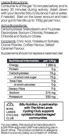 A new level of energy and endurance can be found with SiSu 2Hr Fuel Cell, in the irresistible Salted Caramel flavour. This low sweetness gel packs a punch with 120g of power, making it the perfect companion for athletes seeking quick release energy, carbo-loading, and electrolyte restoration before, during, and after exercise.